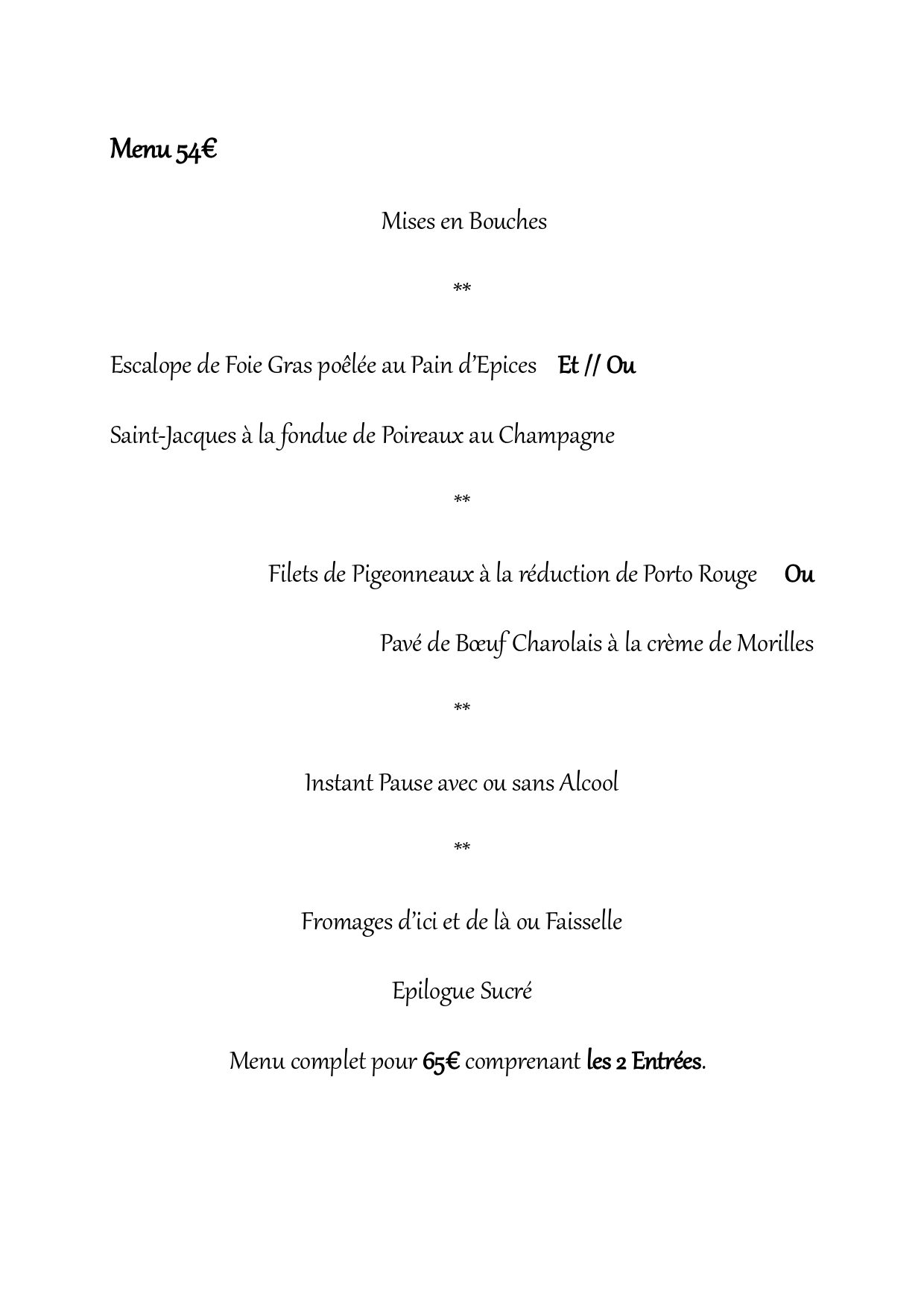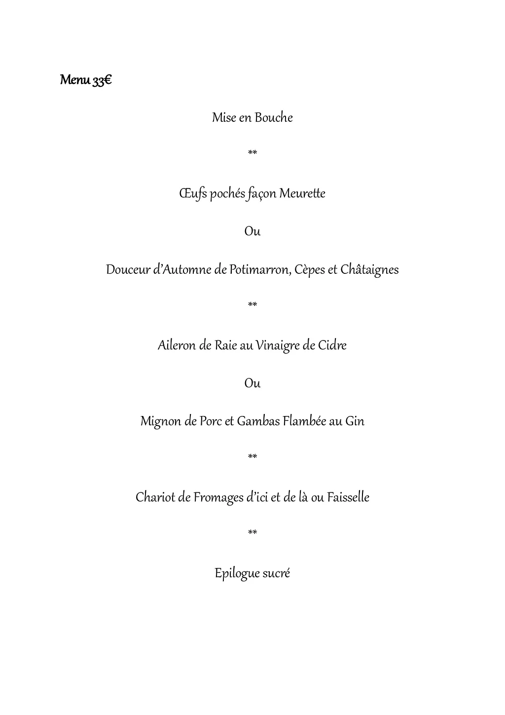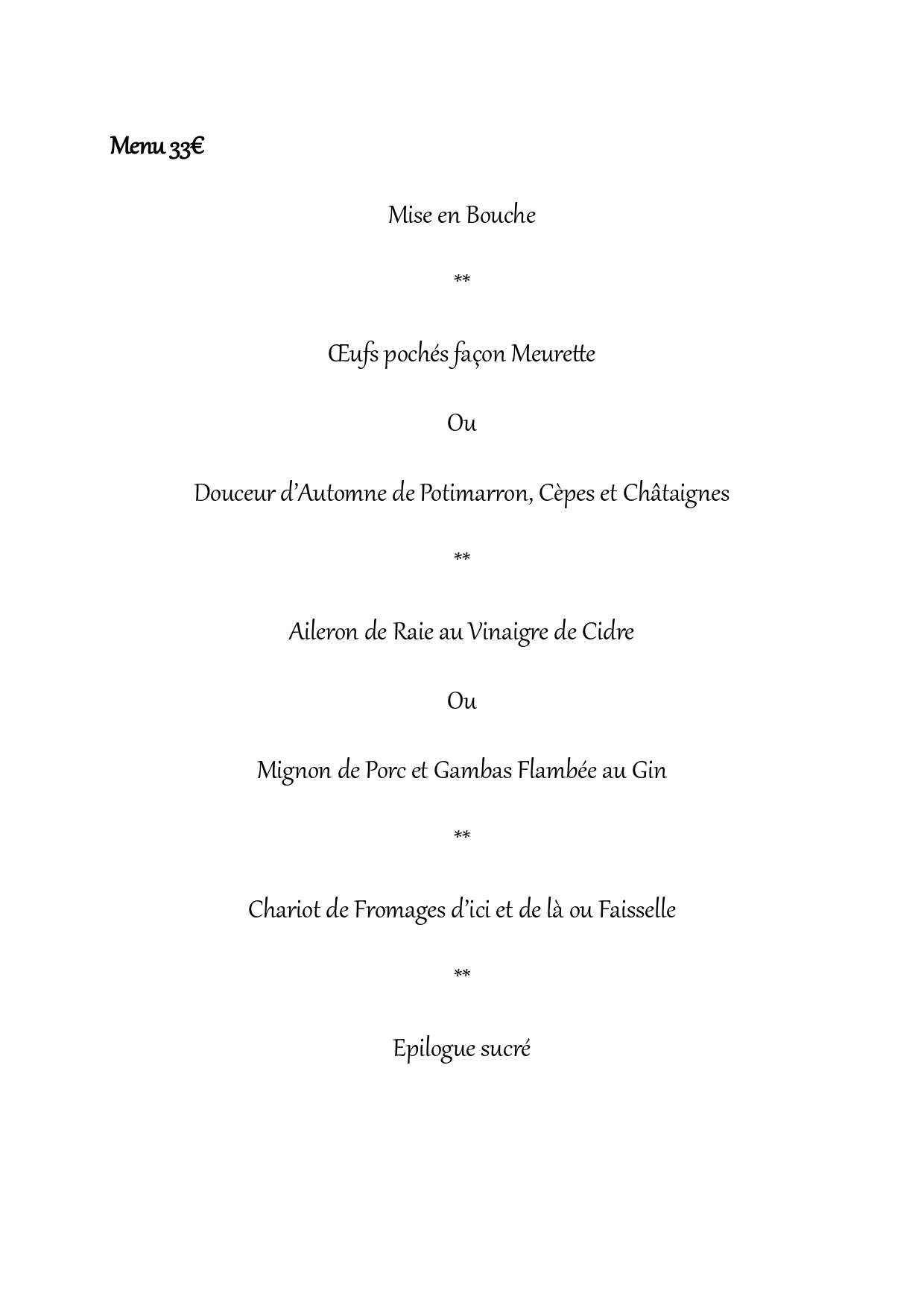 Entrée******Plat******Fromages******Desserts******Café / Vin