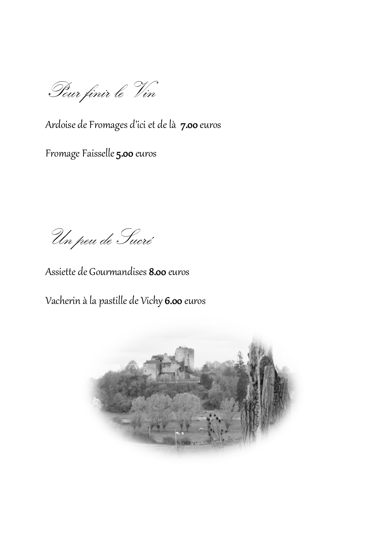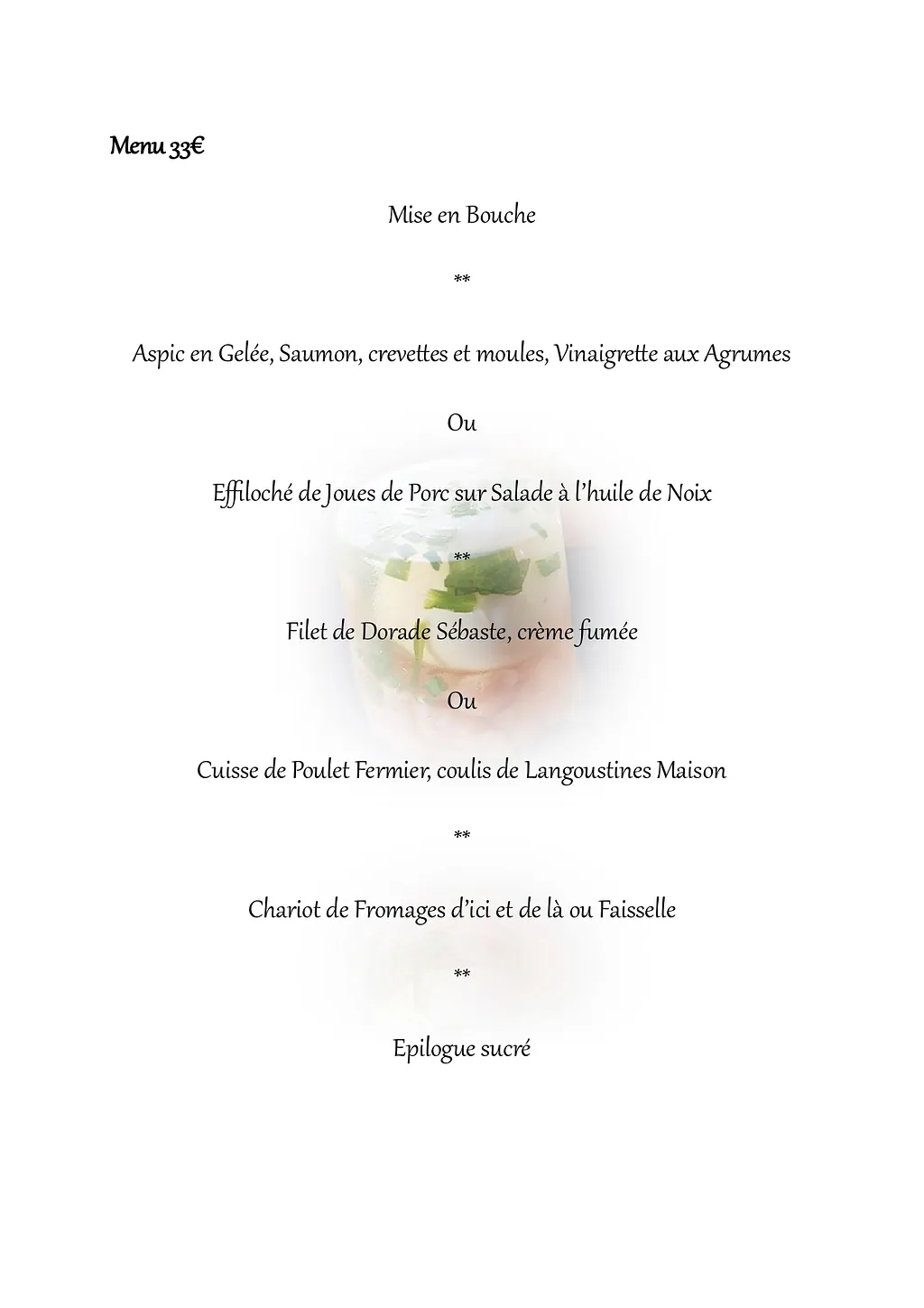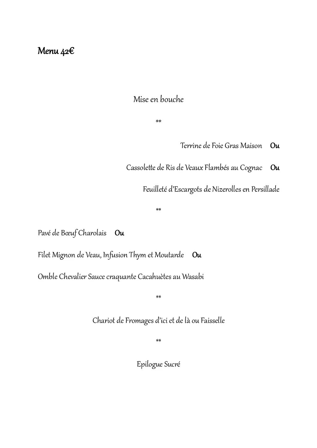 Entrée******Plat******Fromages******Desserts******Café / Vin